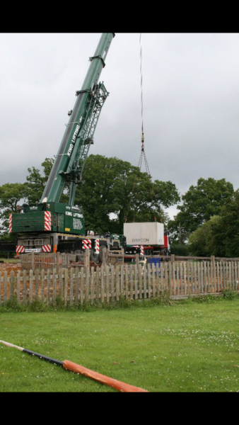 We hired a heavy duty crane with a long reach to transport the cellar to the hole where it had to be placed exactly in the correct position against the customers property.